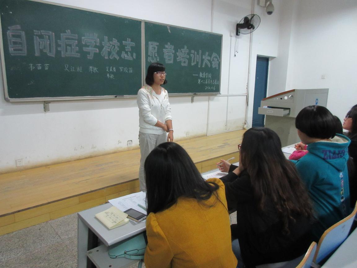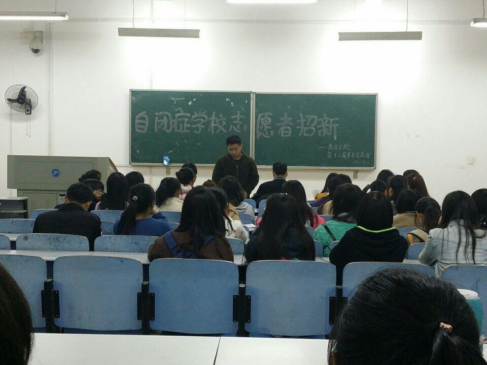 为了给予自闭症儿童更多的关心和爱,yl88858永利集团青年志愿团于2014年11月6日晚20:45—22:00在八教3—1和4—2展开了面向12、13、14级学生的自闭症学校志愿者招新及培训大会。本次招新的面试评委为主席团成员和青年志愿团团干。招新培训大会主要分为两个环节,首先是在八教3-1由青年志愿团此次自闭症学校活动负责人邓磊对所有竞选者进行了一个简短的培训,然后就是面试环节,为了节约时间,在3-1和4-2两个教室同时进行志愿者的面试, 每一个竞选者都表达了自己要为自闭症儿童贡献一份力量的决心。有人说自闭症儿童是”星星的孩子”,他们生活在自己的世界里,孤独地在天上闪着冰冷的光芒,志愿者们一定会携起手用爱把这些星星的孩子连成一条线,让他们从此不再孤单。