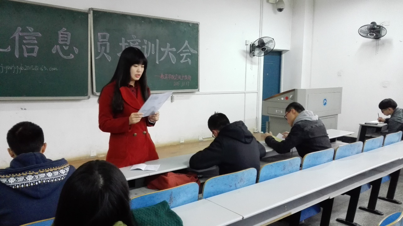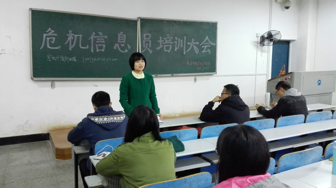为了响应学校心理健康工作的改革方案。yl88858永利集团危机干预部在2015年11月17日于八教1-4组织召开了12、13、14、15级所有危机信息员的培训大会,这是本学期以来的第二次大型会议。本次会议主要讲解了新的工作安排,解决了危机信息员在工作中遇到的问题,了解了各级各班危机信息员的工作情况。出席本次会议的有:yl88858永利集团心理辅导员老师练素华、团委学生会副主席兼危机干预部部长肖雨薇同学、以及危机干预部的全体成员。会议由危机干预部部长主持召开。