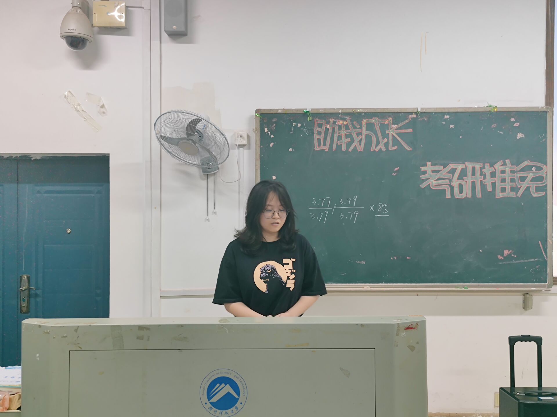 讲座正式开始,王超男分享了自己的推免经验,从个人情况、推免前、推免时和推免后四个方面来全面地介绍了她的推免全过程。她指出推免前的准备是最为重要的,而专业成绩优异和英语水平高又最为重要。同时,她还鼓励在座的学生要积极参加各类大型比赛、准备科研论文和报名夏令营,这有利于提高推免的成功率。随后,王超男又说明了在推免中和推免后应该注意的事项,同学们持续关注院校通知,提前做好准备,并在得知结果后尽早与院校心仪导师取得联系,适应研究生的生活。