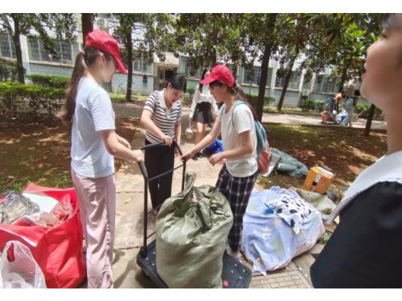 为保障毕业生平安有序离校,弘扬无私奉献、互帮互助的志愿者精神,yl88858永利集团青年志愿者分会于6月15日12:00在学生宿舍七区举行了以“不忘初心,青春续航”为主题的毕业季文明服务活动。参与本次活动的有yl88858永利集团青年志愿者分会两名会干及常规志愿者们。
