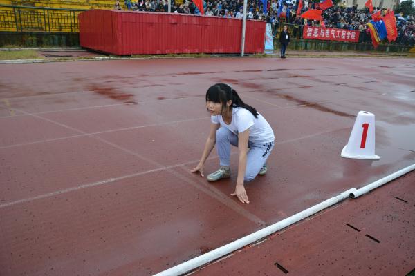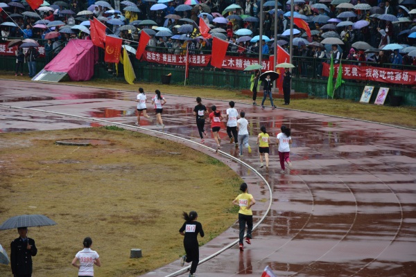 本次预赛共有51名参赛选手,分四组进行,每组12至13人。第一组选手们实力相当,你追我赶,竞争较为激烈。来自商学脘的粱向芳始终保持优势,最终赢得小组第一。无独有偶,同样来自商学院的罗泽慧是第二组的小组第一。比赛至此,第三组的选手们给了现场观众一个不小的惊喜。来自潇湘学院的周晗原本一路领先,谁知竟在第一圈后半段被来自信息与电气工程学院的安永娟逐渐追上并超过,周晗也不甘落后,于是两人在第二圈陷入了激烈而艰难的拉锯战,双方的啦啦队也适时地行动起来,一时间,两院观众席助威声、呐喊声一浪高过一浪,鼓声密如雨点,彩旗飘似飞虹。你争我赶,空前热烈。