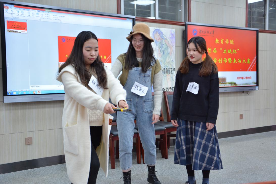 赛后,《蜗牛贝贝的梦想》中蜗牛妈妈的扮演者17级教育学专业一班的郑美龄同学赛后表示:“我们组的故事用欢快的节奏和清晰的故事脉络,表达了每个人都有追梦的权利和勇气。为了这次比赛,小组成员们都在排练中不断改进,不断得到进步。希望每个看了我们表演的人都能努力追梦。”
