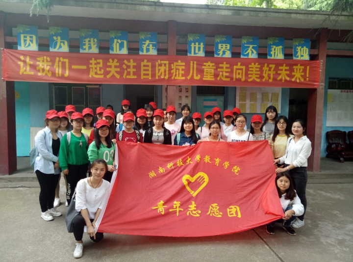 当日天气如同志愿者们的心境一般明朗,春光灿烂,阳光明媚。中午1时,带着愉悦的心情,志愿者在湖南科技大学南大门集合并随后坐上了前往亲园自闭症学校的公交车。不久,他们到达目的地。一到亲园培智自闭症学校,志愿者们再次谨记团队设立的注意事项,志愿团负责人则为每名志愿者分发象征志愿活动的小红帽,协助他们找到各自负责的“星星的孩子”(自闭症儿童)。一开始,青年志愿团团长就为两个特殊家庭送上了凝聚着他们满满爱心的善款。接着志愿者们和自闭症儿童一起上课。课堂上,志愿者们协助老师教孩子们各种动作,带着他们完成老师所布置的任务。初见陌生的志愿者,小朋友们似乎有些抵触:孩子们或忽视他们,或推开他们的手,或哭着喊着找妈妈,甚至有的孩子还淘气地打着面前毫不熟悉的哥哥姐姐。但是经过志愿者的耐心陪伴,渐渐地,小朋友们也变得越来越乖巧、听话。放下防备之后,小朋友会和志愿者们一同在舞蹈课上跳舞,在绘画课上剪纸,在体育课上欢快地奔跑嬉戏,甚至自闭症儿童还会奔入他们的怀抱,由开始的哭闹变为大声地叫“哥哥姐姐”。时间在欢笑中一晃而过,很快一下午的陪伴时间就过去了,这也到了志愿者向可爱的孩子们道别的时候了。孩子家长们纷纷牵着自己小孩的手,教他们对可敬可亲的志愿者哥哥姐姐们说“再见”。志愿者们也含笑告别了这群单纯善良的孩子,告别了这段珍贵的经历。
