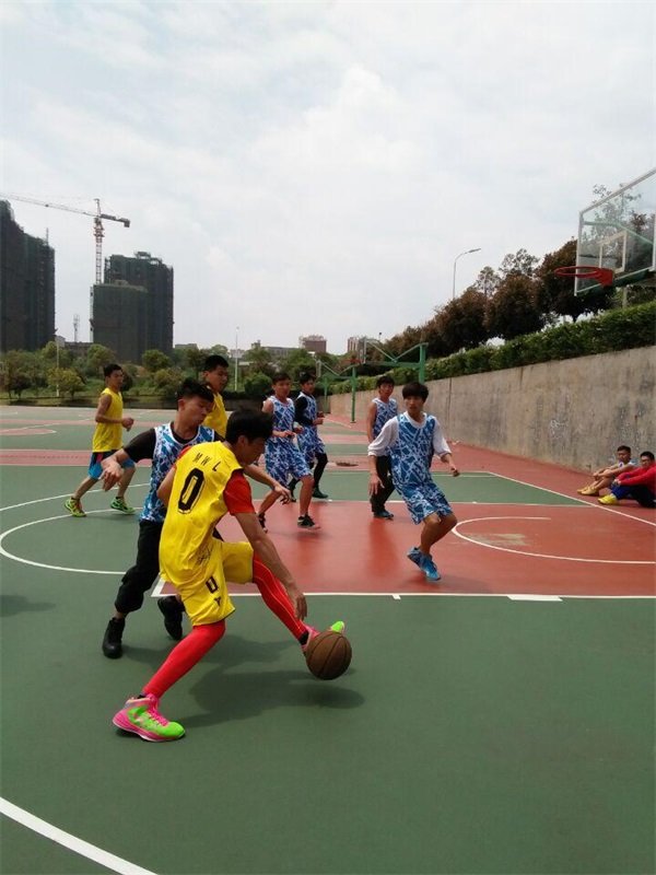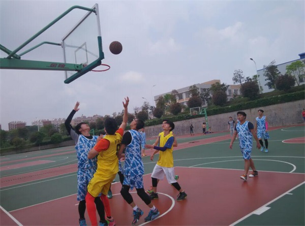 哨发,聚焦,黄蓝两队开始收拢,比赛一开始始战况紧烈,黄衣军教育男儿先行,带球直进,烘照日光,明晃晃直射篮筐。蓝衣信息队在追拦夺中连抢几分,赛时紧凑,比赛以10分钟一小节计算,汗渍溅水,在滚烫烈日闪闪发光,上半场教育男儿稍稍落后几分。