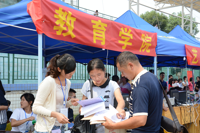 7点整,陆陆续续的有新生前来报到,新生接待工作正式开始。