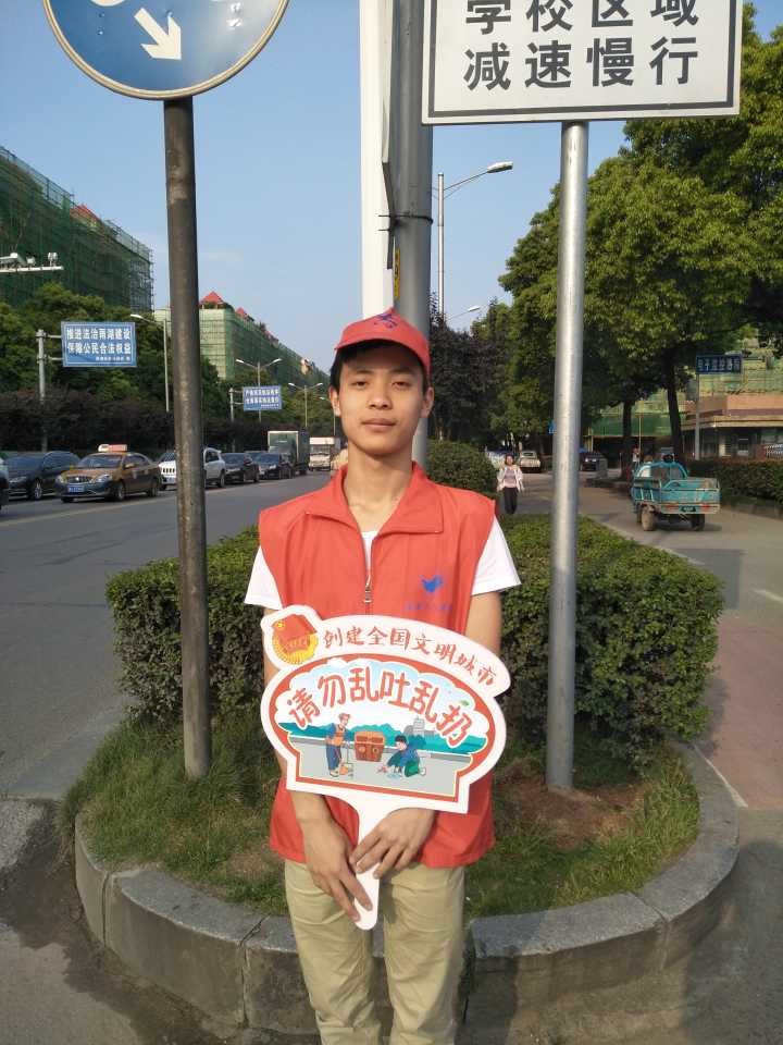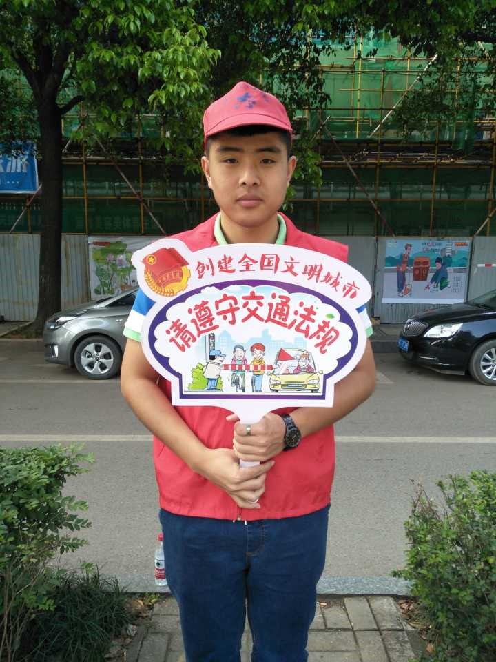 上午7:15,带着还不刺眼的阳光,他们到东门集合,然后一同去附近的公交车站等候前往目的地的公交。等了一会,他们面带笑容踏上了28路公交车。一直保持微笑的他们看似心情很愉悦,一会也就到了目的地,下了公交车,他们拿出标语排,穿上站岗服,戴上志愿者的小红帽,拿出团旗,然后拍了一张合影。接着他们就开始了一上午的文明站岗志愿活动。他们是6人轮流站岗,所以有4名志愿者先开始了这上午的站岗。有2名志愿者负责斑马线的地方,他们两人,分别站在马路的两边手里拿着“请走斑马线”的标语牌,那是,阳光还不是很烈,照在他们脸上显得格外美丽!另外两名志愿者站在公交车站附近,同样,他们也是分别站在马路的两边。他们手里拿着“请勿乱穿马路”的标语排。剩下的两名志愿者这个时候脱下了工作服,然后忙于给站岗的4名志愿者拍照,拍完了照,这两名拍照的志愿者也就可以暂时休息一下了。就这样,时间一点一点的流逝着,转眼间一个小时过去了,太阳也越来越大,一直站在阳光下的志愿者也有些累了,这个时候,在休息的两名志愿者再一次穿上志愿服戴上小红帽去替换站在阳光下的志愿者。这也就是第一轮换班。换下来的志愿者就找了一块阴凉的地方坐下休息。休息了大概30分钟,这两名志愿者又前去替换另外两名从开始就一直站岗的那两名志愿者,这时站了一个半小时的两名志愿者就可以休息了。太阳越来越大,无情的照射着他们,他们的额头也有了些许汗水,但是他们依旧以微笑面对来来往往的风景,他们依旧以标准的站姿执行着他们的文明站岗任务。就这样,他们一次次的轮流换班休息,直到中午12点。终于结束了他们的工作。