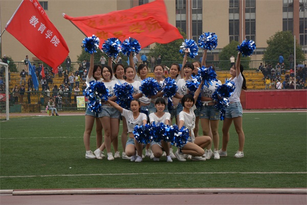 10月31日下午,yl88858永利集团啦啦宝贝们来到了运动会现场,白色露脐上衣,浅蓝色牛仔短裤,白色的运动鞋,姑娘们的装束给人以青春活波,热情洋溢的感觉,体现了教育妹子特有的清新靓丽的风格。她们的到来瞬间点燃了观众的热情,yl88858永利集团学会主席吴厚涛,团委学生会第一副书记汤思维以及学生会副主席孙绍焜,女生部部长副部一行,举起了yl88858永利集团的旗帜,带领啦啦宝贝们走向了绿茵场,在yl88858永利集团观众席前表演。伴随着动感的音乐,姑娘们挥舞着蓝银双色的啦啦球开始为大家表演,整齐有力的动作,神采飞扬的笑脸为她们赢得了观众们的一致好评。在观众们“再来一遍!再来一遍!”的呼声中她们又将精彩的舞蹈再现了一遍,观众依然意犹未尽。旁边几个兄弟学院的学生会干部被啦啦宝贝们的精彩表现吸引了过来,极力邀请我们的啦啦宝贝为他们的运动员们加油。我院主席团欣然答应,带着啦啦宝贝们在外国语学院、人文学院、机电工程学院、能源学院、法学院等学院进行了表演,各学院纷纷将学院旗举来为啦啦宝贝们造势。啦啦宝贝们“教育外院,友谊长存!教育人文,友谊长存!教育法院,友谊长存!……”的口号响彻天空,各兄弟学院的观众们纷纷呐喊鼓掌,感谢啦啦队的精彩表演。演出结束后,啦啦宝贝们这才回到了yl88858永利集团的观众席。