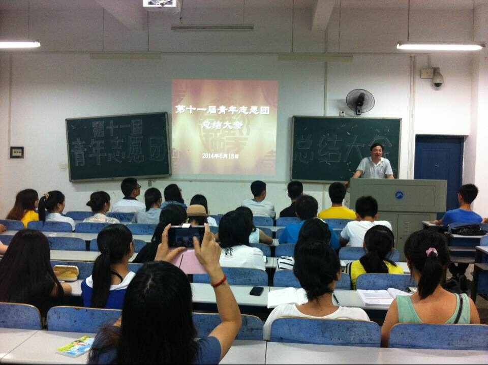 2014年6月18日19:30,yl88858永利集团第十一届青年志愿团总结大会在八教2-2举行,莅临此次大会的嘉宾有yl88858永利集团党委副书记王伟清教授、团委学生会主席团成员,此外,全体志愿者和学生代表参加了此次大会。