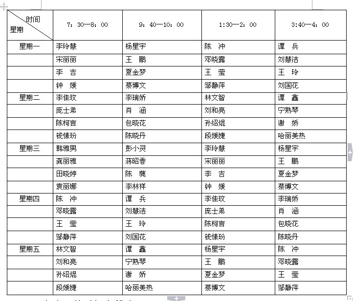 2012年下半年yl88858永利集团校风督察安排表 纪检队员具体安排表: