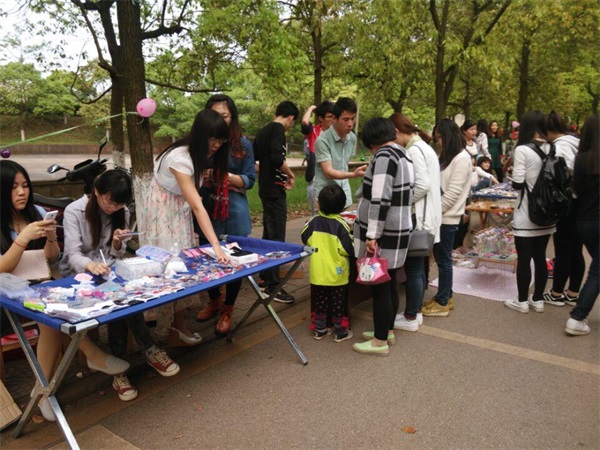 到了下午16点,小老板们摆出提前准备好的商品放在小桌子上。小饰品,书,衣服,化妆品,杯子零食,礼品等琳琅满目。来来往往顾客很多,热热闹闹,很有买卖市场的气息。顾客们有被朋友拉去捧场的,当然也有自己得到消息赶去买东西的。