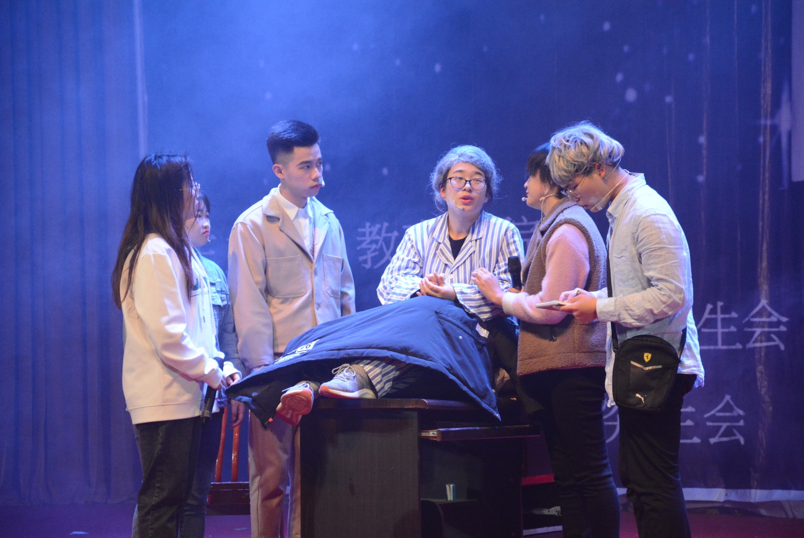 烟雾笼罩中,器乐合奏将观众带入一个古典浪漫的年代。研究生带来的歌曲对唱《一生有你》深情款款,展示了学子在外求学内心葆有的纯真。深夜电台《你的月亮我的心》温情演绎,电台与音乐的奇妙碰撞慰藉每一份情感寄托。话剧《永远璀璨》与小品《等你回家》令观众捧腹大笑,喜剧的背后诠释人性的温暖与感动。爵士舞蹈热情奔放,走秀表演颜值爆表,律动与节奏感点燃全场。舞蹈《采薇》富含文化底蕴与民族特色,悠扬的古典音乐和着姑娘们的曼妙舞姿,令人陶醉。经典电影《音乐之声》以儿童文学的形式搬上舞台,给观众带来了效果极佳的视听享受。四营六连的教官惊喜串烧献唱《情歌王》, 将大家的思绪拉回到了100天前的军营生活,尖叫与欢呼声将晚会推向高潮。