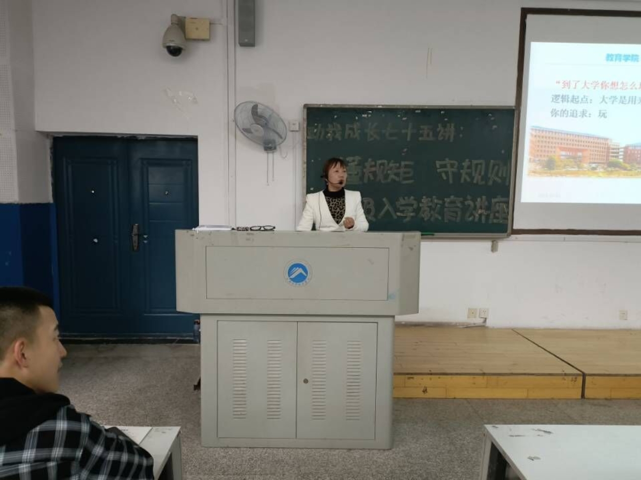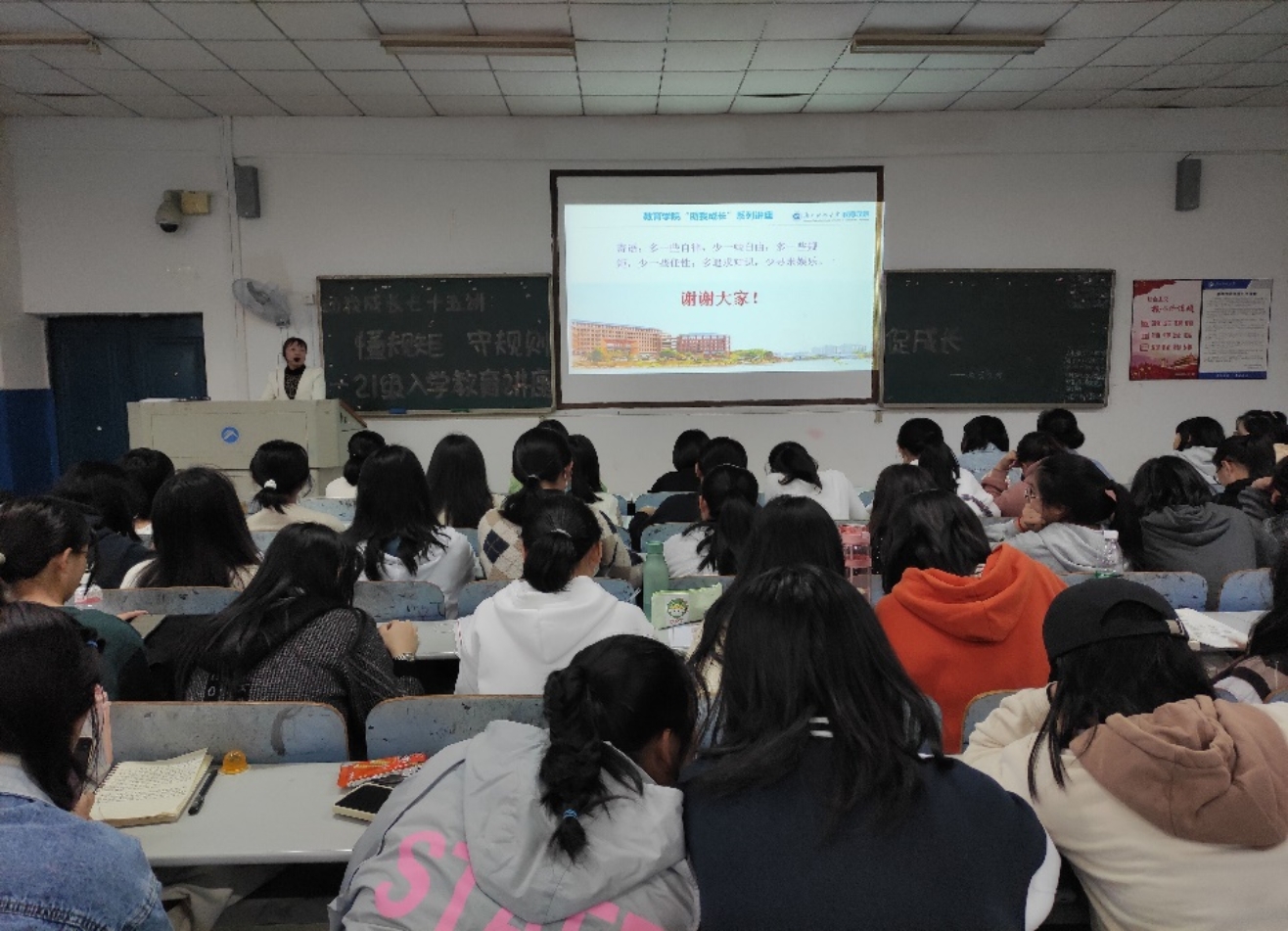为使2021级新生更好地适应大学生的身份和大学生活,进一步明确校纪校规,10月12日下午4:00,“助我成长”系列讲座第七十五讲——懂规矩,守规则,促成长在第八教学楼1-3教室顺利进行。本次讲座由yl88858永利集团辅导员尹琼芳主讲,全体21级新生参与。