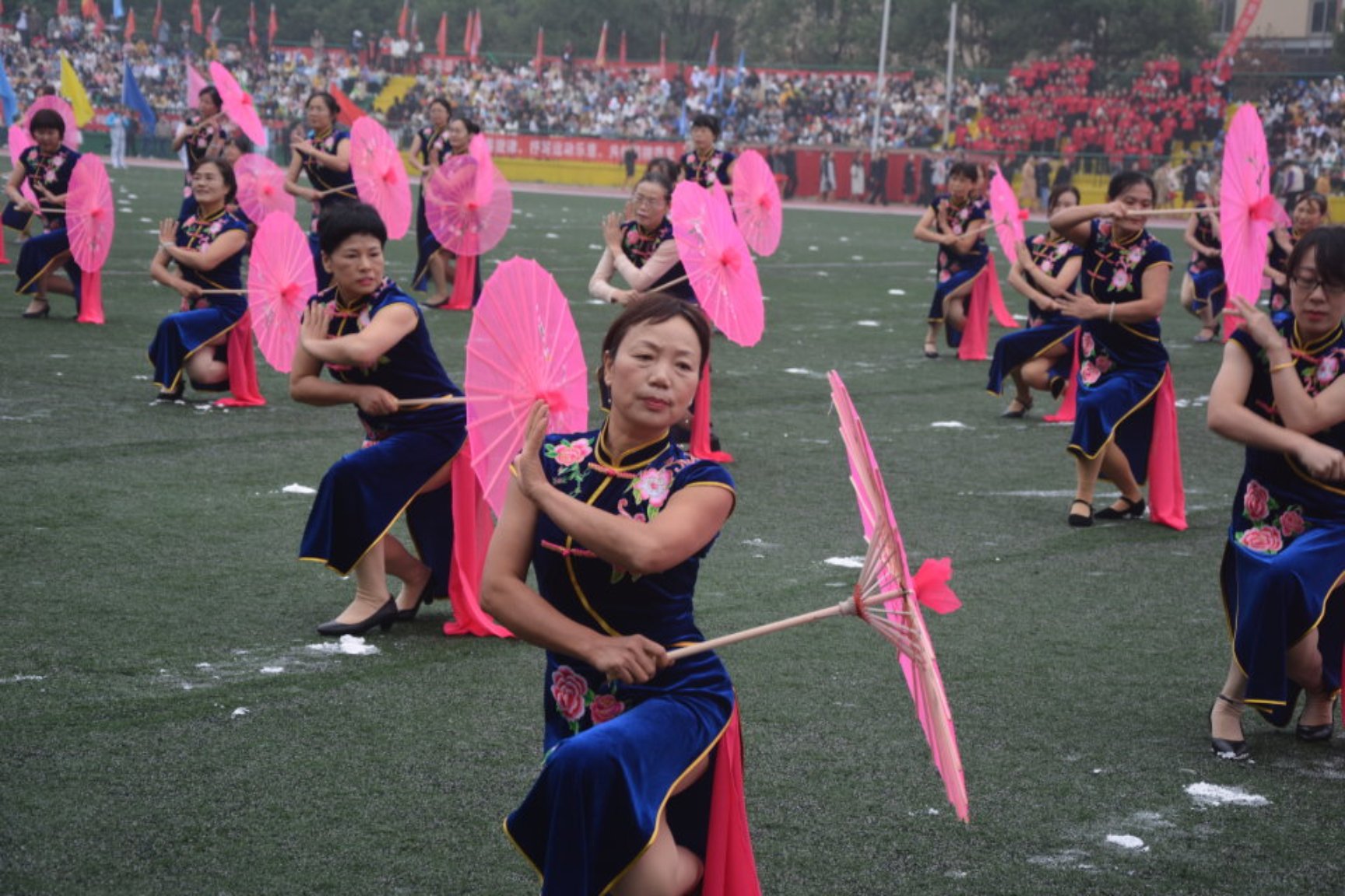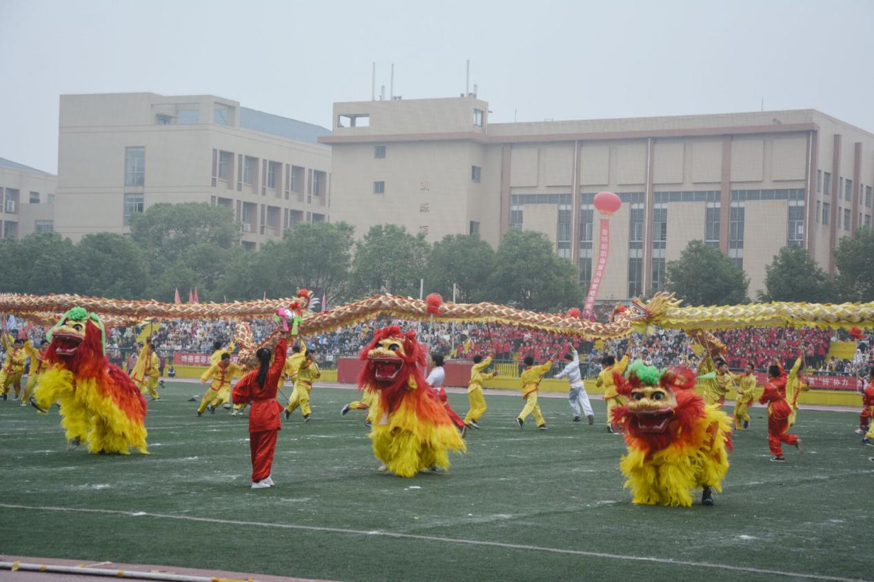 运动员代表张俊东、裁判员代表唐宁潇的庄严宣誓,极大地鼓舞了全体运动员的士气。随后的表演,更是将现场氛围推向高潮。教职工大型旗袍伞舞表演队穿着统一的宝蓝色经典旗袍,踏着青春的鼓点,挥动着靓丽的纸伞,律动起舞,展示了我校教师昂扬向上的风采和纯朴亲善的形象。曾代表学校多次得奖的体育舞蹈队也为大家带来了一场视觉盛宴。健美操表演活力四射、龙狮队身姿矫健翻腾起舞,引得全场欢呼雀跃。最后,刘德顺宣布运动会正式开始。