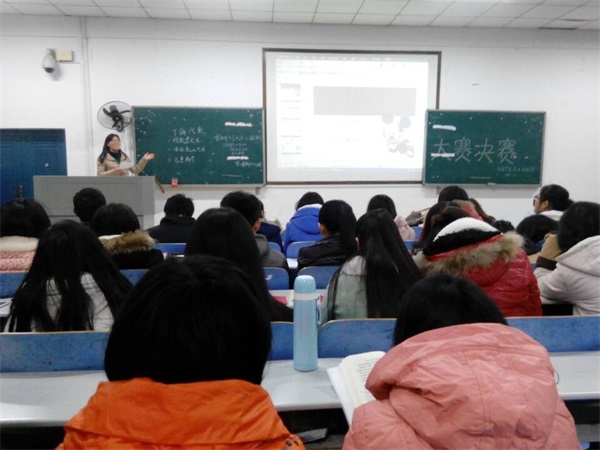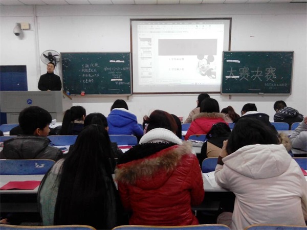 比赛开始主持人宣读了比赛规则:各位选手提前准备PPT进行十分钟的授课;授课结束后,先由评委老师进行点评,再由大众评委进行投票,每票记一分,最后评委老师进行打分;两次得分相加为最后得分。