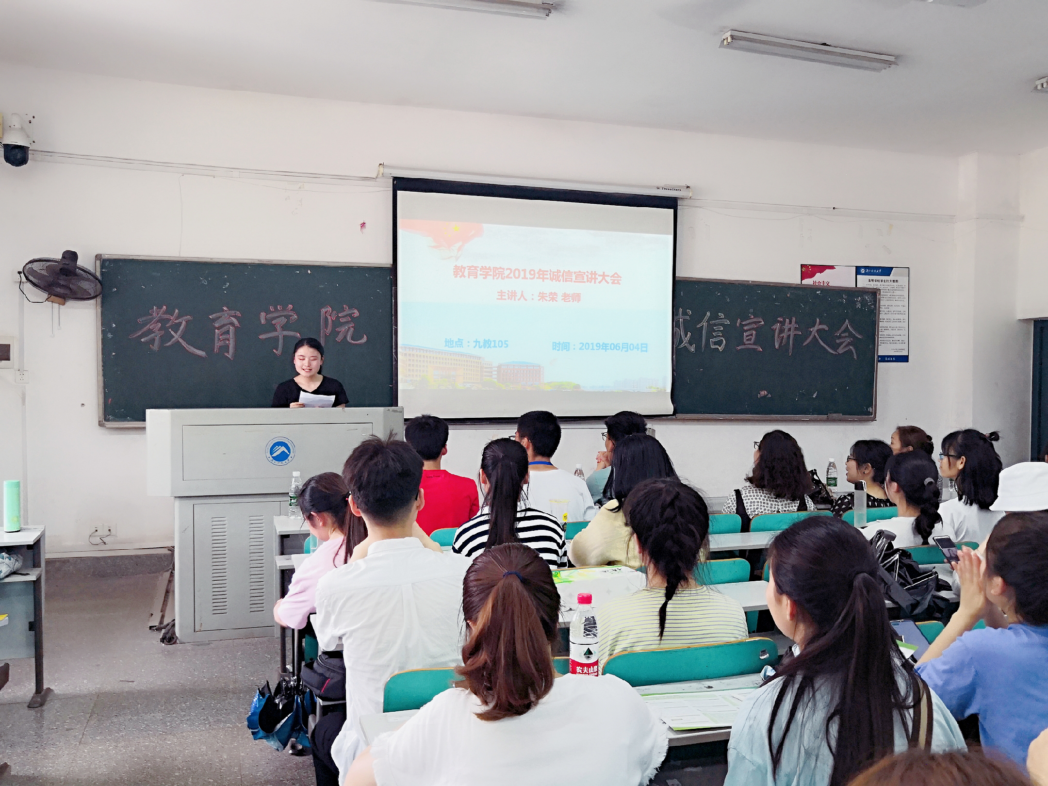 2019年6月4日下午16:30,yl88858永利集团2019年诚信宣讲大会在第九教学楼105教室举行。出席本次会议的嘉宾有湖南科技大学大学生资助办公室唐璟老师、法管学院朱荣老师以及yl88858永利集团学工办辅导员尹琼芳老师,yl88858永利集团17、18级的所有家庭经济困难学生和生源地贷款学生参与本次大会。本次会议由yl88858永利集团团委学生会勤工助学部副部长樊静稳主持。