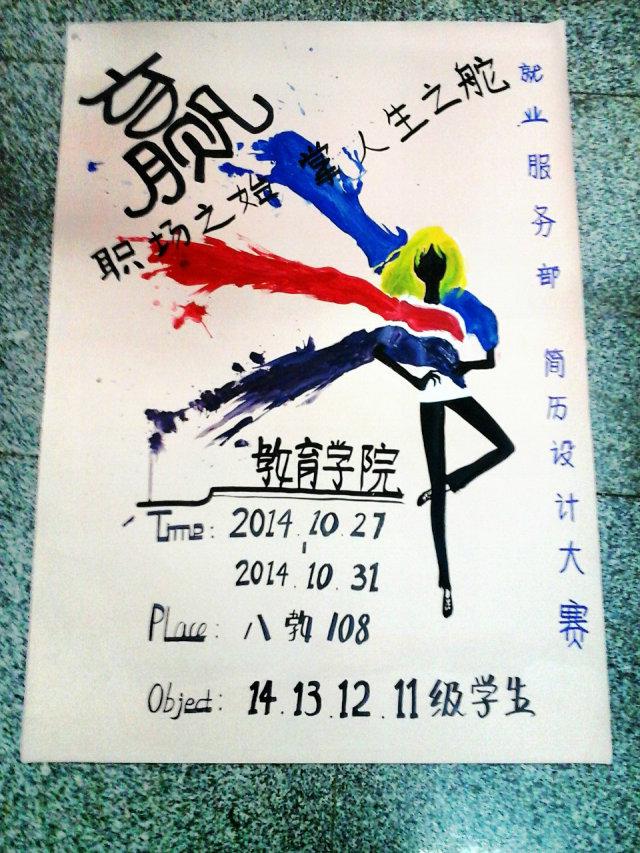 在这个人才竞争的时代,简历对于毕业走出校园的大学生来说是就业的第一场战争,而设计出一份让自己脱颖而出的简历,则能够让我们在求职中事倍功半。此次简历设计大赛经过了与学院主管毕业生工作的练老师协商并征得学院书记与老师的同意。就业服务部为做好此次本次大赛的准备工作,部长徐甜甜在例会上进行通知与讲解,副部长杨柠遥联系广告部画海报宣传本次活动,并通知学院各班班长团支书在班里进行宣传等多个阶段,终于破“简”而出。