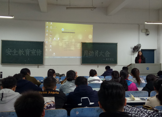 会议前期练老师为大家讲解了此次安全教育宣传月目的及重要性,希望引起大家足够的重视。并向大家解读安全教育宣传月的几点主要内容。第一:防火、防盗、防被盗、防交通事故、防人身侵害、防中毒、防传销、防自然灾害等安全知识教育。第二:严明校纪校规,加大学生行为管理的力度。第三:加强疾病预防、饮食卫生安全教育,保障师生身体健康。第四:加强学生宿舍安全管理工作,确保学生宿舍安全。第五:努力提高广大学生心理健康意识和自我调节能力。第六:禁止参加邪教及危害国家安全活动,加强师生自我保护意识。在讲解过程中,练老师还紧接着讲了几个经典的例子,使加强安全防护的观念深入每一位在场同学的心中。