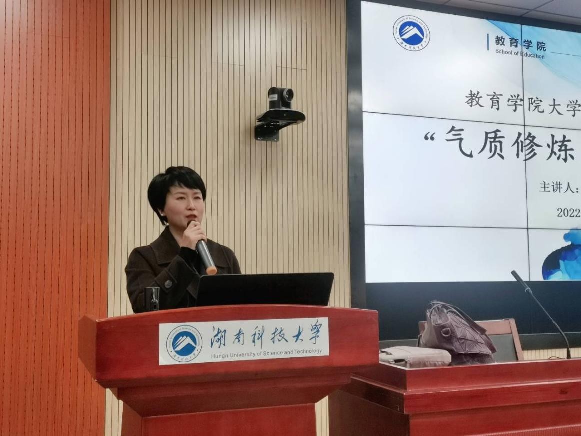 讲座伊始,刘婕进行发言。她讲到,气质是一个综合体,一个人想要有气质,不光要注重外表,更要注重内心的修养。在社交场合中,有一个良好的行为规范极为重要。随后,她向大家隆重介绍主讲嘉宾,并邀请她精彩开讲。