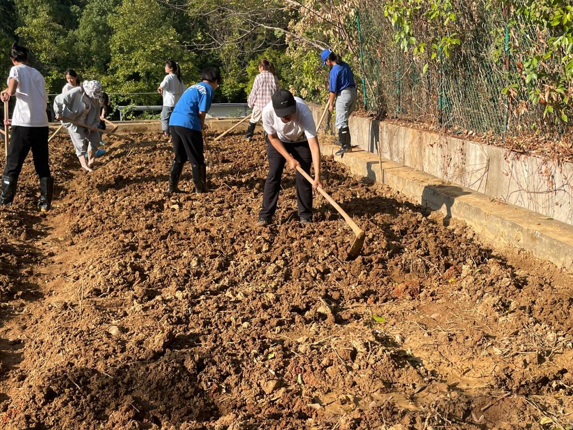秋日暖阳下,22级的部分同学前往生物园进行翻土活动。在老师的悉心指导下,同学们拿着锄头、耙子辛勤劳作、挥洒汗水,满怀对播种的期待。