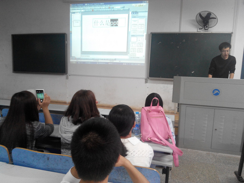 简单的开场白之后,现任网络信息部部长黄煜开门见山:“让我们一起走进PPT的世界。”他从PPT的字体、图表、颜色、排版和特效等方面详细介绍了怎样才能制作一副赏心悦目的PPT作品。紧接着,网络信息部助理许君为大家带来一堂精彩的配色原理基础课程。她通过生动的PPT演示,课堂提问和小测试,以及答题奖励等形式,让课堂气氛分外活跃。