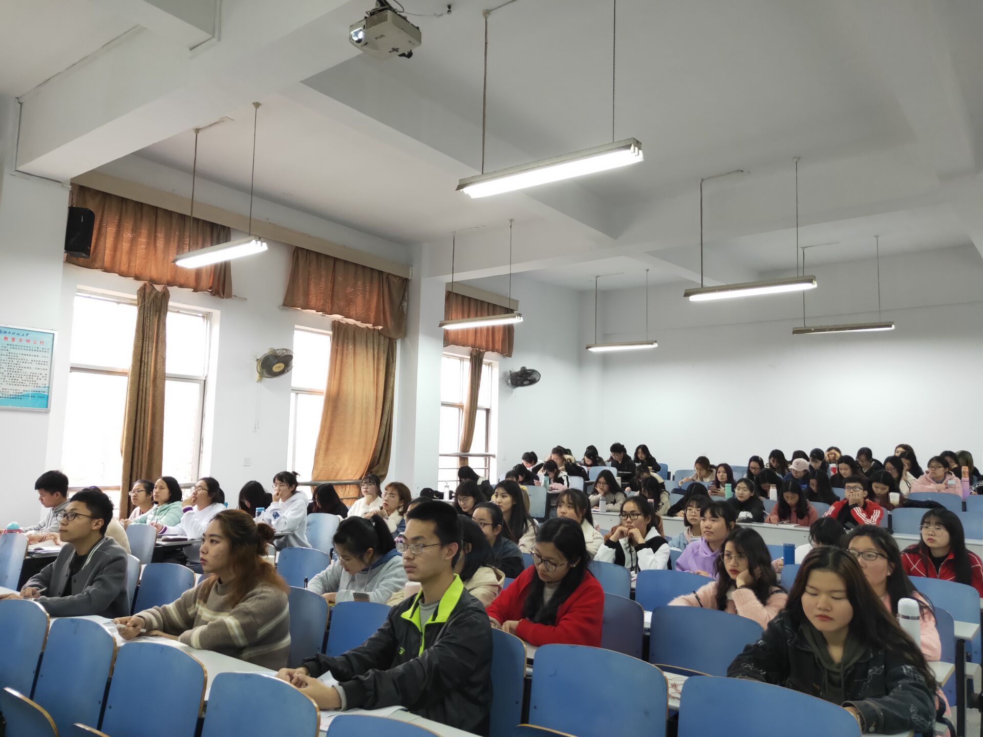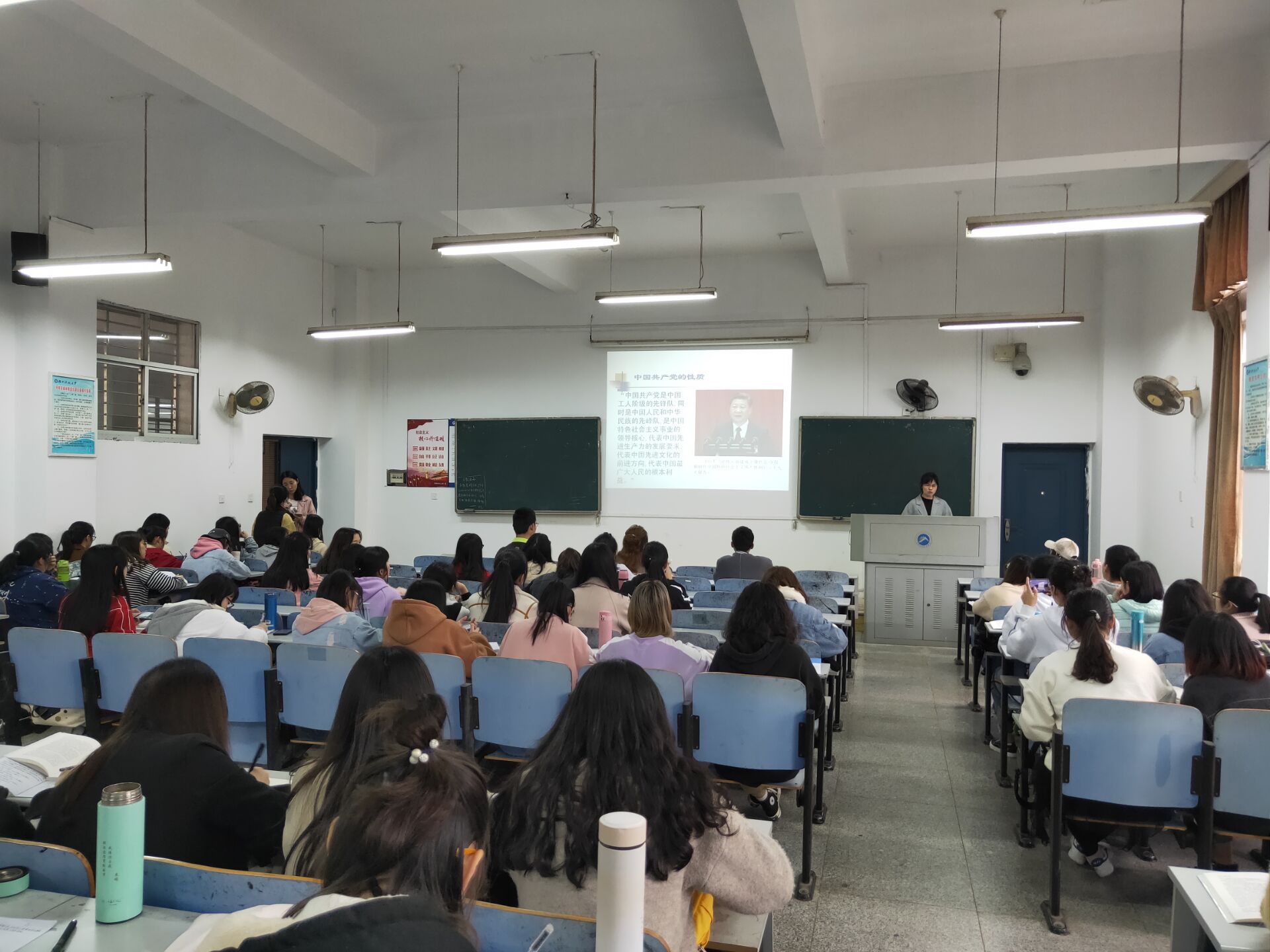 首先,胡银华老师细致全面地为学员讲解了中国共产党的根本性质,加深了学员们对党的深入了解。接着,她为学员们分析了中国共产党是中国特色社会主义事业核心的原因及党的宗旨,鼓励学员要勇于奉献,服务社会。要求学员们要做到严以修身,严以用权,严以律己;做到胸怀两怀全局,切实做好本职工作;在日常工作中多作贡献坠持做到 “勿以恶小面为之, 勿以善小而不为”;要在构建和谐、文明社会中起带头作用, 使自己的每一个言行,都符合党章要求,都符合人民群众的根本利益。最后,胡老师带领同学们共同学习“两学一做”。学员们聚精会神地倾听,认真做好笔记,学习氛围浓厚。讲座结束后,学员们致以热烈的掌声。