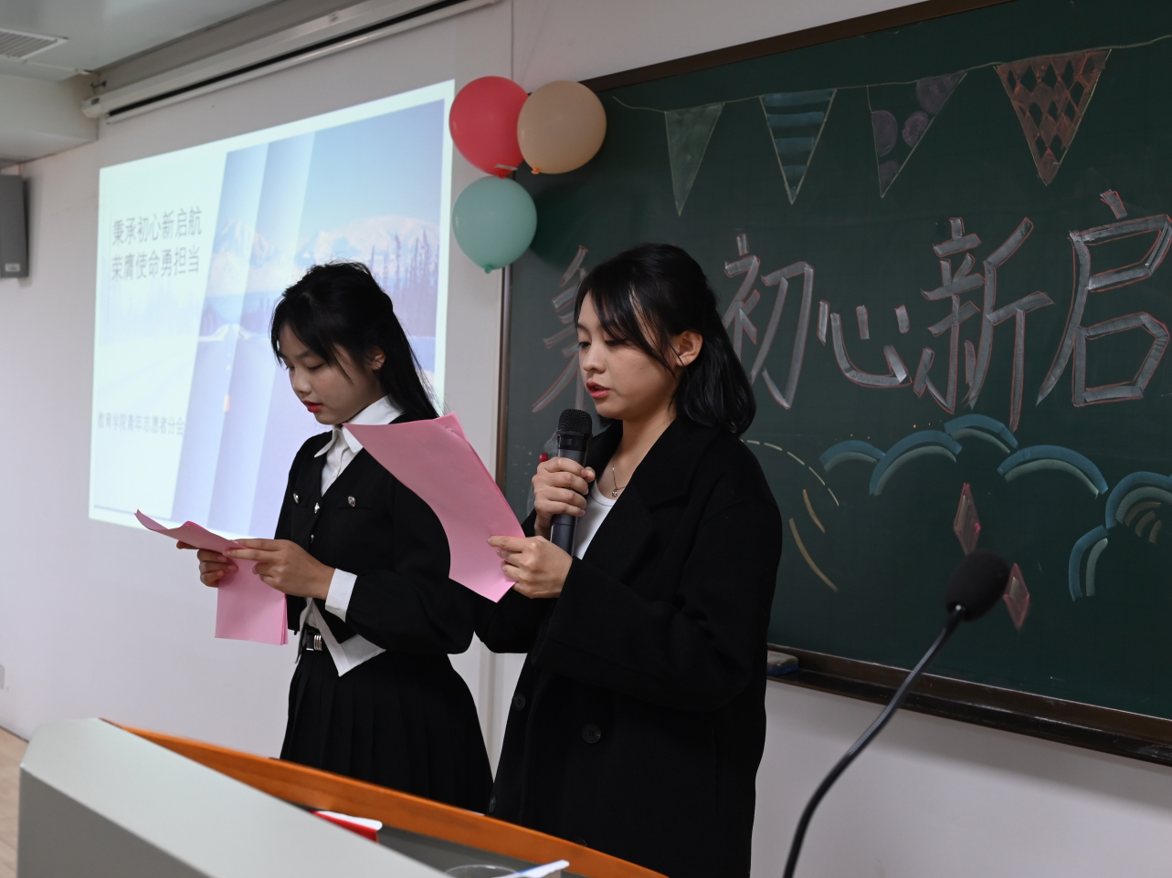 在大会进行期间,大家观看了由第二十一届青年志愿者分会委员以及志愿者们带来的表演。通过他们活泼热情的表演,在场人员感受到了他们肆意飞扬的青春和经久不息的热爱。此外,大会进行的互动小游戏也能成功让现场气氛活跃起来。新一届分会会长李家俊及委员代表符春季的发言都表达了新一届青年志愿者分会将担当起“志愿者”这一光荣身份的职责,尽己所能,延续青志的优良传统与作风。“我志愿成为一名光荣的志愿者……”大会在全体志愿者的铮铮誓言中落下帷幕。