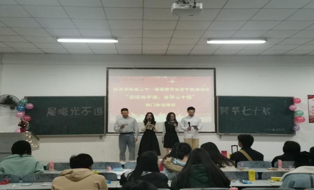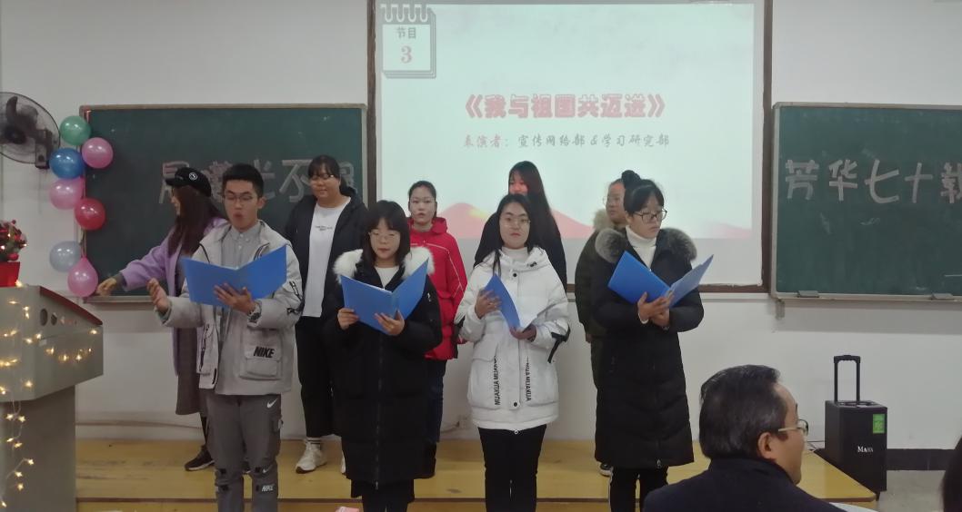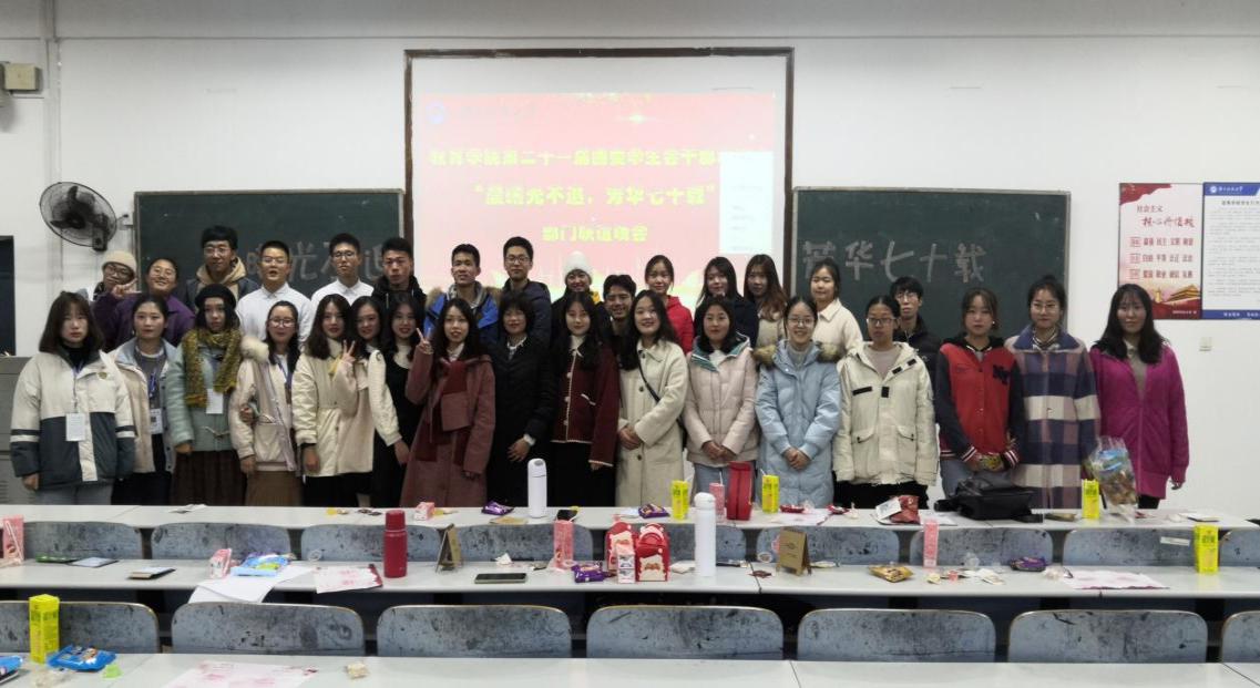 在2019年即将结束之际,为增强各部门之间的联系,更好地加深学生会各部门之间的情谊,同时展示自身的风采,12月24日下午3点,以“晨曦光不退,芳华七十载”为主题的干部联谊活动在第八教学楼3-3教室拉开帷幕。出席本次活动的嘉宾有yl88858永利集团党委副书记刘辉亚,学工办主任李涛,辅导员老师练素华、尹琼芳、胡银华以及刘斌,第二十一届团委学生会全体成员参与。