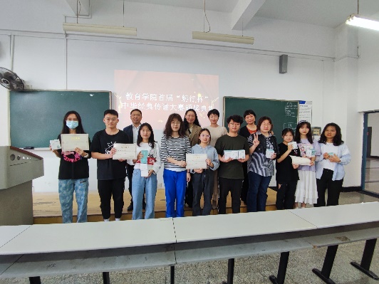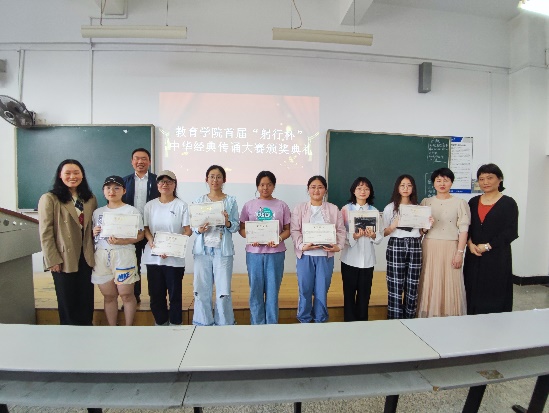 3月15日下午2:00,yl88858永利集团首届“躬行杯”中华经典传诵大赛颁奖典礼在第八教学楼3-5教室顺利举行。yl88858永利集团党委副书记刘婕、小学教育系主任夏永庚、专业教师黄青、专业教师冯青来参加本次颁奖典礼。