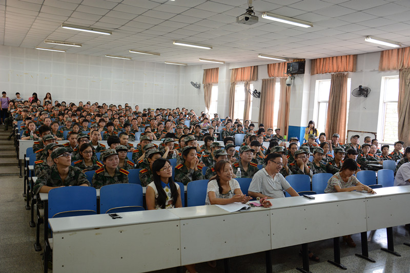 2014年9月8日15:30,yl88858永利集团2014级新生军训动员大会在八教2-3举行。参加此次动员大会的有yl88858永利集团党委副书记王伟清教授,学工办主任李涛老师、辅导员尹琼芳老师、胡银华老师、练素华老师和滕茜茜老师,以及yl88858永利集团14级全体新生及其助理班主任。