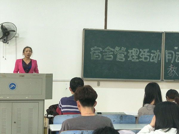 在最后,学工办辅导员尹琼芳老师进行讲话。尹老师用风趣幽默的比喻形容了寝室长的重要作用,“寝室就是我们的家呀,那我们在座的都是寝室中的大家长呀!”在这轻松的氛围尹老师开始了她语重心长的教导,强调纪检部和危机干预部一粗一细地协助同学们管理我们的生活。“纪检部管的是粗,管理寝室的卫生、纪律,危机干预部就是细,管理我们寝室每个人的心理。”尹老师强调寝室长的重要作用,指导他们要凝聚大家力量,一起组织引导、策划各自寝室开展的这次活动,说明虽然活动只有一个月,但是寝室的管理却是长期的。最后尹老师预祝“寝室管理活动月”圆满完成,展现yl88858永利集团自己寝室文化,通过这次活动把每个寝室的凝聚力、归属感建立起来。