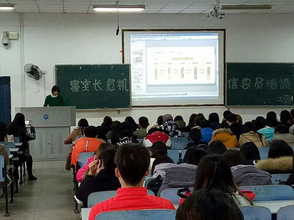 在培训开始之前,同学们早早地来到了教室,拿出笔和笔记本静心等待老师讲解。练素华老师讲解了大学校园内常见的精神与心理问题、如何识别精神卫生问题、并着重地提到了抑郁症的事例与危害,以及面对危机作为寝室长和危机信息员应如何处理。让在座的同学们更加深刻地明白了自己的职责与使命。在培训过程中,练老师引用了几个她亲身经历过的事例,以真实可信的语言提高了同学们的专注度,让同学们在轻松愉悦的环境中更好得接收心理方面的知识。并且在培训中解决了同学们的困惑,同时也提出了一些意见。培训结束后,由贾梦同学进行总结,并向同学们再一次强调了校园安全问题。最后,由危机干预部给各年级各班发放《冬季防火,拒绝大功率;使用安全电器,安全使用电器承诺书》,并让寝室长带回签名后张贴于寝室,各班领取后有序退场。