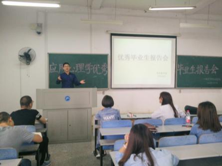14时40 分,主持人宣布报告会正式开始,简说此次报告会共分为经验分享和答疑解惑两个环节。首先来自应用心理学一班的吴厚涛进行个人分享。他以“梦想”为主题,通过对自身励志故事的真情叙述,引出了“有梦想、有激情,让自己累起来”是个体成功的重要途径。随后,来自二班的苏维维做了简单报告,强调一个人只有明确自己想做的事,并且用心去做、用尽全力地去做才能做到尽善尽美。三班的毛晗婧及林红娟紧接着进行了各自发言。其中毛晗婧提出,大学生最重要的是能力,在清楚自己想要的是什么的情况之下,认真地去坚持,努力提升能力才能更好地去适应将来的社会生活。