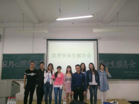 微风驱散雾霾,阳光穿透雨露。2016年5月27日,久雨初晴,yl88858永利集团优秀毕业生报告会终场——2012级应用心理学专业优秀毕业生分享会在第八教学楼4-1顺利举行。我院2012级优秀学生代表吴厚涛、苏维维、毛晗婧、林红娟依次为2015级应用心理学专业同学进行了各自的经验分享。学生会副主席刘亚琨、杨柠遥及就业服务部副部长郝显露出席现场。