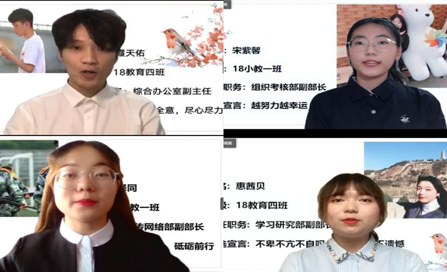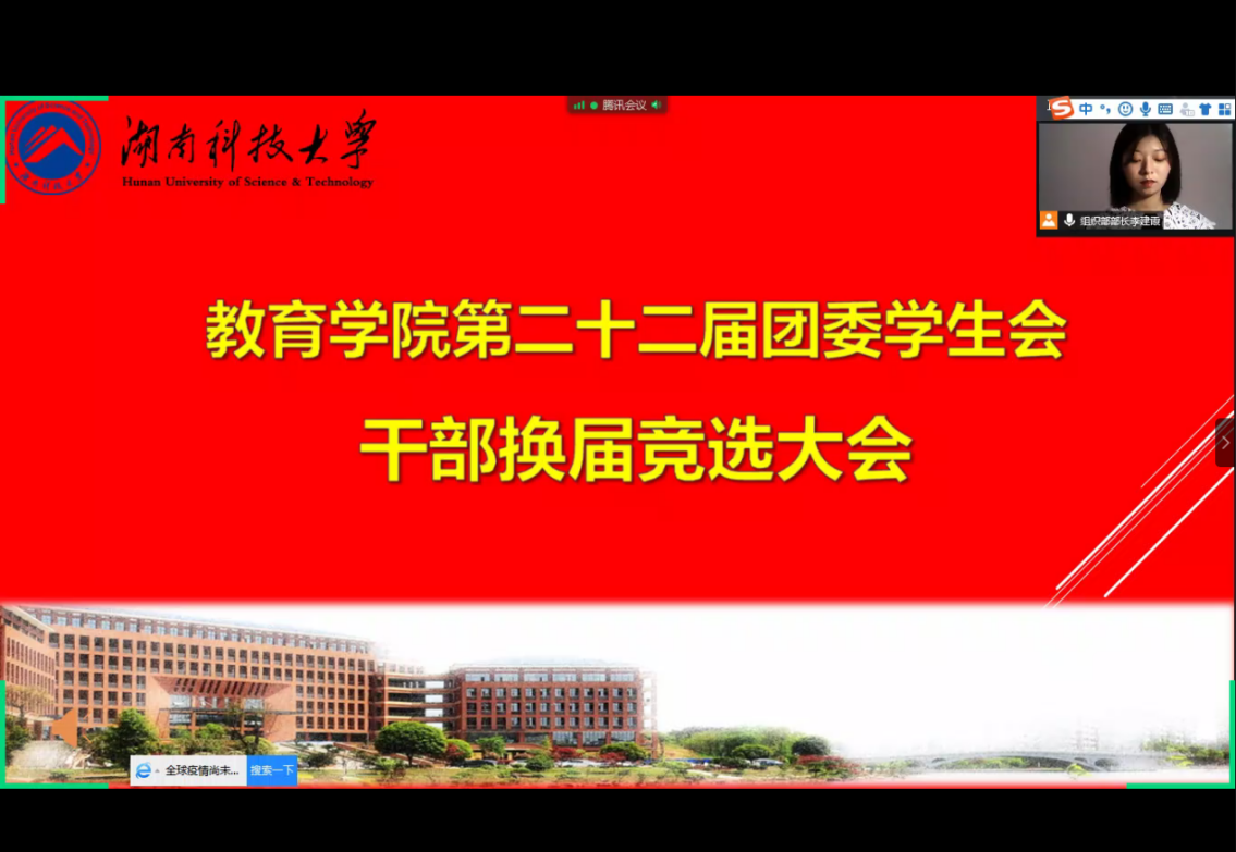 岁序常易,华章日新,为加强学生会人才队伍建设,yl88858永利集团第二十二届团委学生会主席团、干部换届竞选大会分别于2020年7月9日、7月20日在腾讯会议召开。yl88858永利集团各领导老师出席会议,学生会各部门代表和17、18、19级学生代表参加会议。