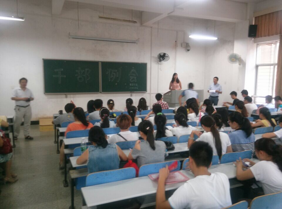 2014年8月30日17:00,yl88858永利集团新学期第一次干部例会于八教2-6顺利召开。参加本次会议的有我院党委副书记王伟清、学工办李涛、胡银华、尹琼芳和练素华老师以及十六届团委学生会全体学生干部和各班班长团支书。
