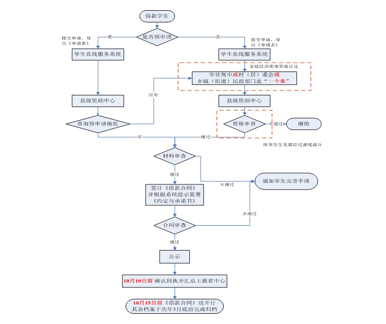 2、10月15日前,县级资助中心将盖章后的《申请汇总表》、《生源地信用助学贷款公示情况说明》和一份《借款合同》提交省资助中心。