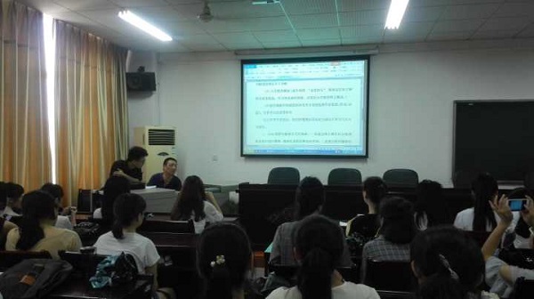 李涛老师就迎新报到流程、注意事项、志愿者分工安排情况等内容进行说明,在场学生专心致志地做着笔记。关于宿舍床位选择、学费如何缴纳、学校具体位置、入学教育测试等问题,志愿者都必须了如指掌。只有清楚地把握所有细节问题,志愿者才能更好地答疑解惑、帮助新生顺利入学。