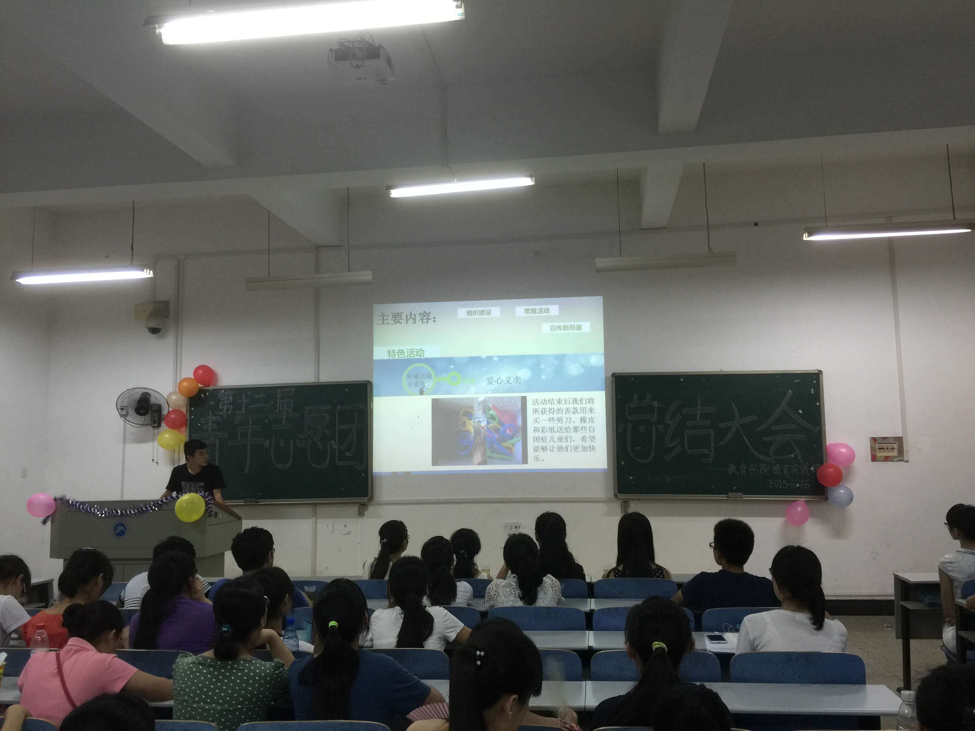 2015年6月26日19:30,yl88858永利集团第十二届青年志愿团总结大会在八教2―1举行。与会嘉宾有:yl88858永利集团团委学生会第一副书记徐春菊,副主席兼综合管理部部长张丹,副主席兼危机干预部部长肖雨薇,副主席兼就业服务部部长杨柠瑶。