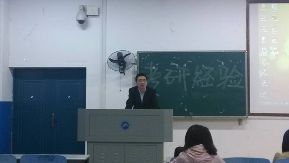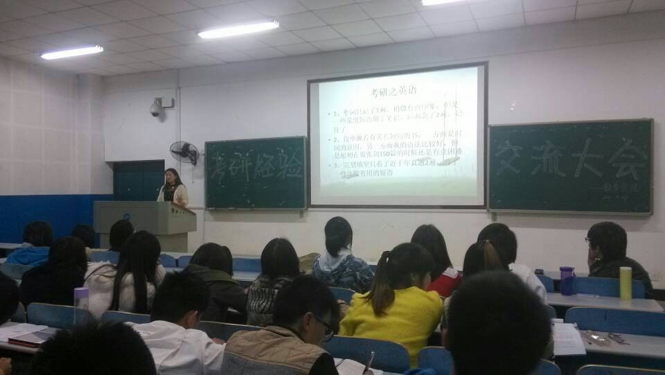 4月24日19:00由我院学习部主办的考研经验交流大会在八教3-3顺利开展。学工办主任李涛出席了这次会议,我院10级学生谭玉、钟薇、吕梦含担任了这次活动的嘉宾,进行考研经验交流。我院11级全体,12、13级部分的学生参加了这次大会。
