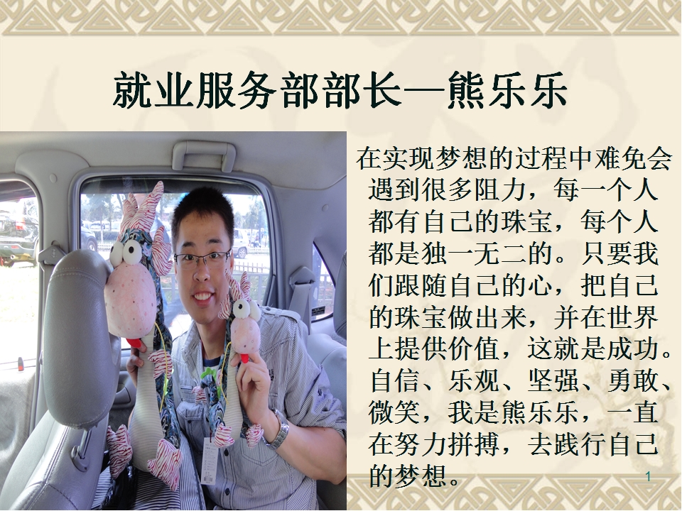 1、协助学院完成研究生新生入学的职业规划讲座,让研究生新生尽快融入研究生生活中并顺利完成角色转换。