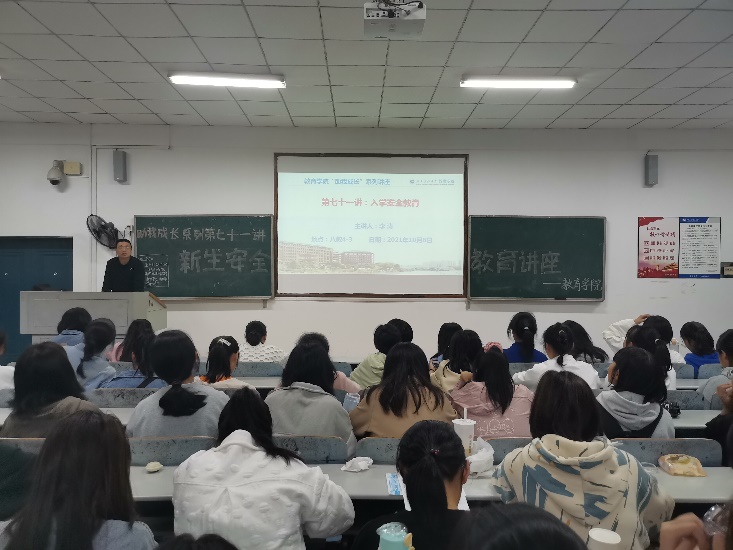 为使2021级新生能更好地适应大学生活,明确校纪校规,时刻注意自身安全,10月8日下午7:00,yl88858永利集团在第八教学楼4-3教室开展了“助我成长”系列讲座第七十一讲:入学安全教育。本次讲座由yl88858永利集团学工办主任李涛主讲,全体21级新生参与。