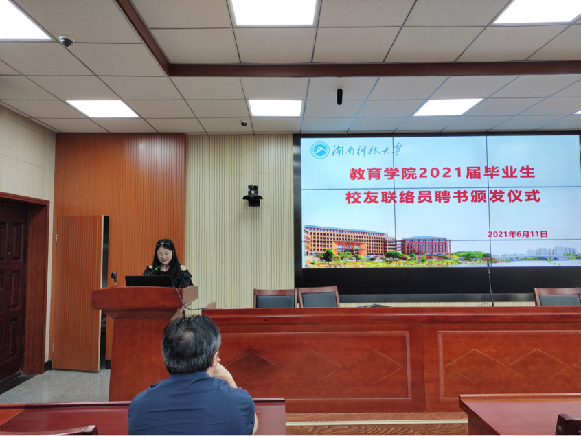 为进一步加强校友联络、增进校友情谊、帮助校友发展,6月11日下午15:30,yl88858永利集团2021届毕业生校友联络员聘书颁发仪式于第八教学楼308会议室举行。颁发仪式由yl88858永利集团辅导员胡银华主持,yl88858永利集团党委副书记刘辉亚出席本次仪式。
