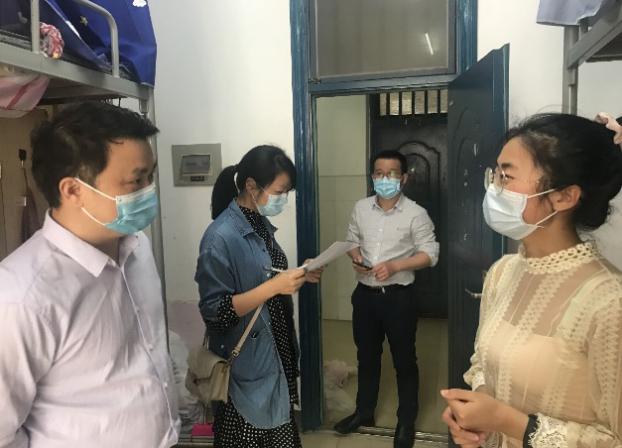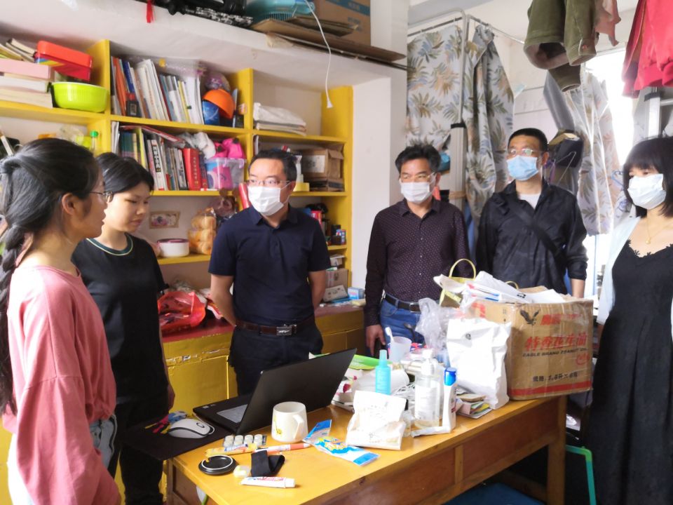 5月13日上午,学院党委书记李炳煌、副院长谭千保、副书记刘辉亚等领导带领全体辅导员分别前往本科生和研究生宿舍看望返校学生,详细了解学生返程详情、心理动态、考研究复试和就业情况,并特别强调疫情防控期间,要严格按照学校要求做好自我防护和每日两次自我检测工作,同时鼓励学生克服困难、努力学习、积极就业。