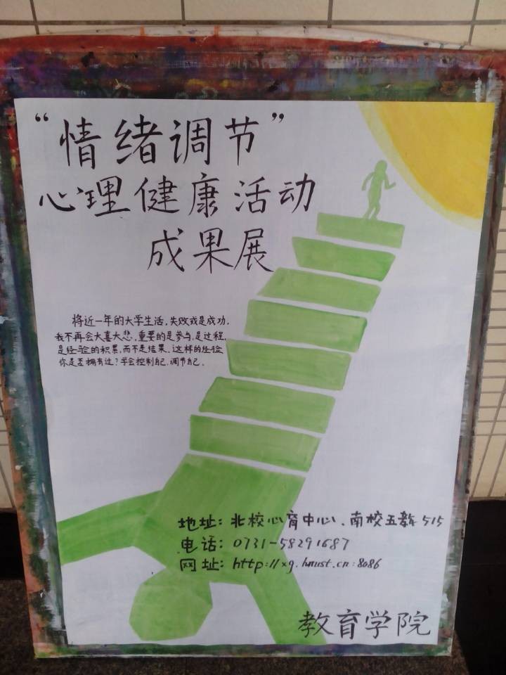 您所在的位置: 首页» 学生工作» 日常管理 情绪调节心理健康活动成果展 时间:2014-05-18 00:00:00 中国·yl88858永利(Macau)股份有限公司-Official Website 将近一年的大学生活,失败或是成功,我不会再大喜大悲,重要的是参与,是过程,是经验的积累,而不是结果。这样的经验你是否拥有过?学会控制自己,调节自己。