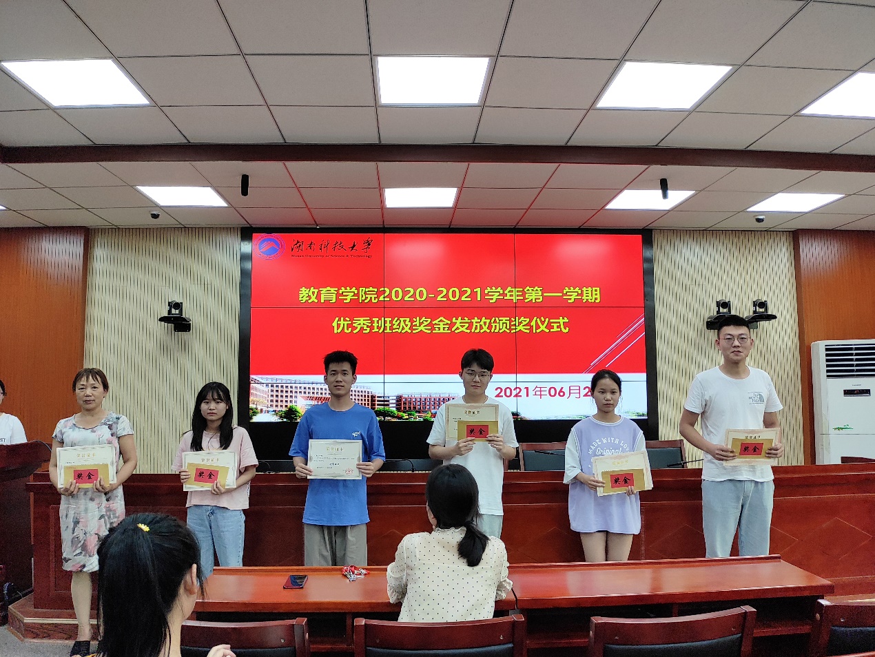紧接着,综合办公室陈路向大家宣读了2020—2021学年第一学期以及第二学期优秀班级的名单,尹琼芳和胡银华分别为获奖班级颁奖,并进行了拍照留念。