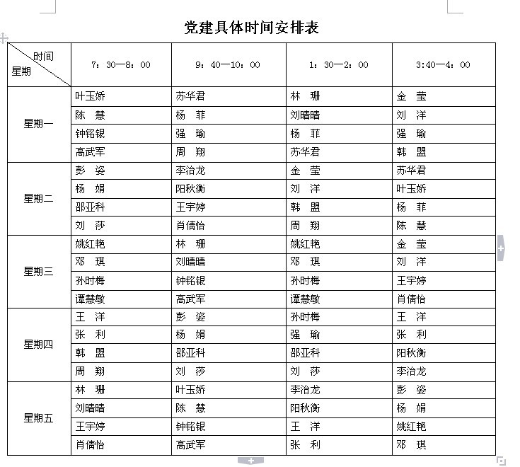 2012年下半年yl88858永利集团校风督察安排表 纪检队员具体安排表: