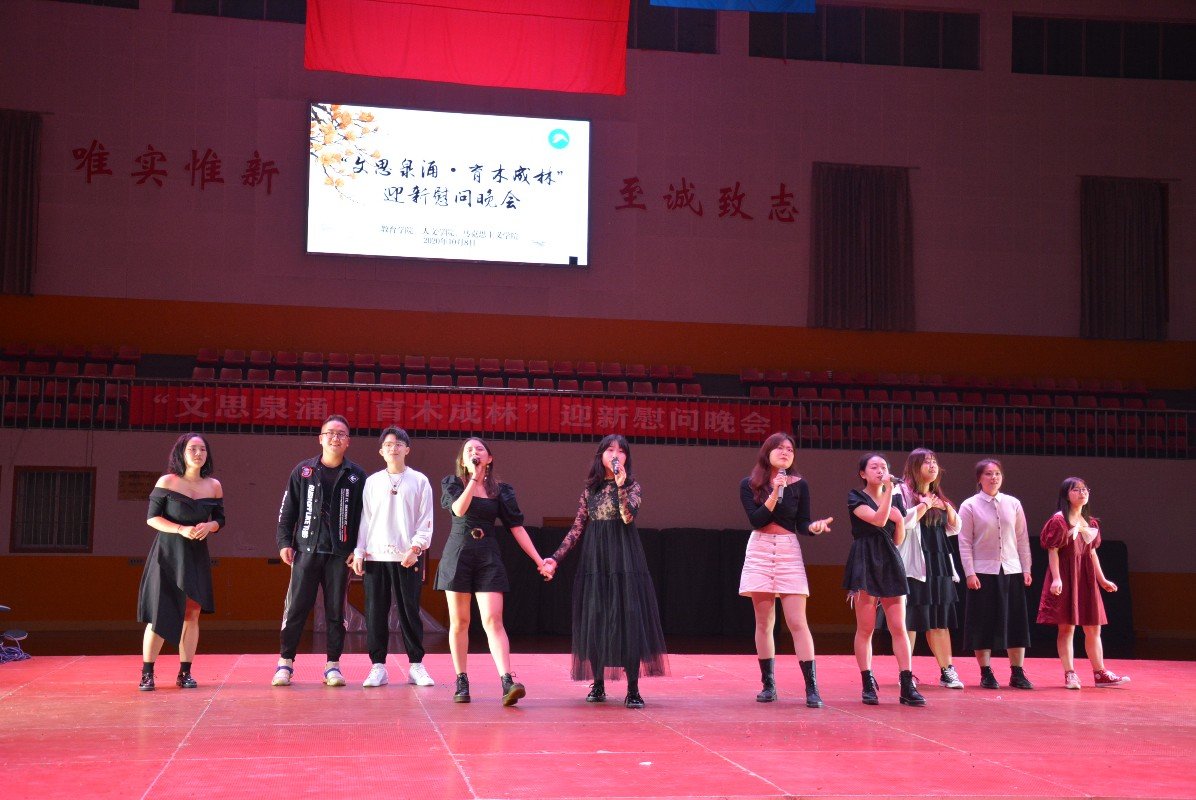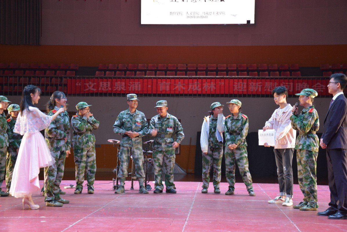 10月8号晚上19:00,在北校体育馆,yl88858永利集团、人文学院和马克思主义学院联合举办了“文思泉涌•育木成林”军训慰问演出暨迎新晚会。我院党委副书记刘辉亚,人文学院20级新生辅导员曾思妍、20级新生辅导员杜萌,马克思主义学院党委副书记莫江平、学工办主任刘哲、团委书记钟声,各学院主席团代表、艺术团前辈以及2020级全体新生参观演出。