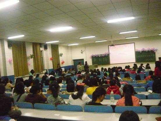 11级新生郑晓露一曲优美的傣族舞蹈则正式拉开了讲座的帷幕。首先,蒋女士强调”世上没有丑女人,只有懒女人。”她表示,美容美体不仅能使自己变美丽;更是对他人的一种尊重。同时,她向学生分别讲述了皮肤的五种类型以及相关美容知识,让大家收获良多。