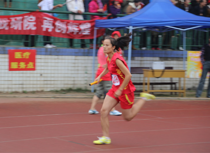 整个上午为观众们上演了一场堪比奥运的大赛。在速度竞争的200米预决赛之后,是耐力比拼的800米与3000米预决赛,以及团队合作的4×100米接力赛。这些比赛都考验了运动员们的综合素质,也展现了我院运动健儿们“永不放弃”的坚强品格及极强的团队合作精神。在速度与耐力并存的学生甲组女子800米预决赛中我院学生杨琼霞奋力拼搏,冲到终点,最终夺得学生甲组女子800米预决赛的第二名,我院观众席上的气氛瞬间沸腾,大家都使出全身力气,为她喝彩。在之后的学生甲组女子3000米预决赛中,杨琼霞同学凭借着自身坚定地信念与优秀的身体素质,不负众望的夺下女子3000米预决赛的冠军。这使得我院观众席的气氛瞬间达到高潮,看台上的观众无一不为杨琼霞同学的胜利而尖叫、挥舞双手,呐喊声、哨声、鼓声声声擂动。