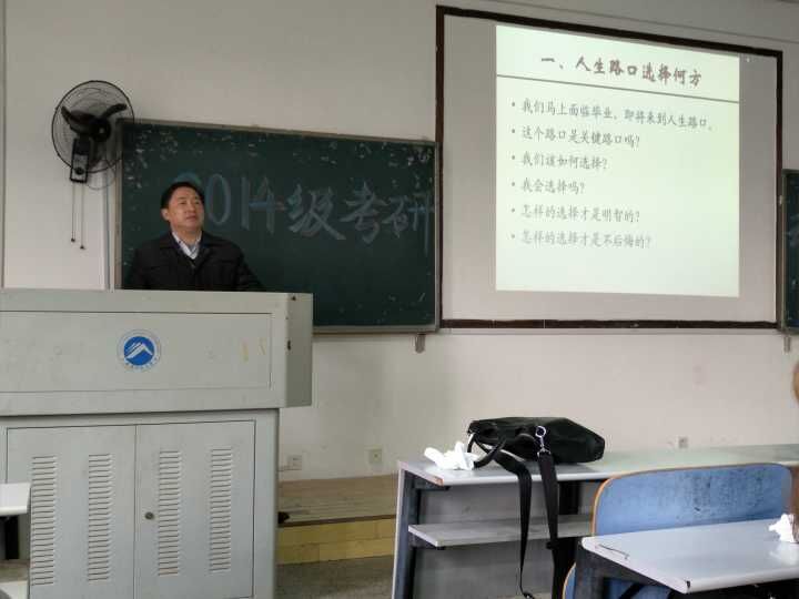 为使2014级学生能做好人生选择,找准人生方向,2016年12月28日上午十点,yl88858永利集团2014级考研动员大会于第八教学楼2-3准时开始。动员大会由yl88858永利集团党委副书记王伟清教授主讲,院学工办练素华老师也出席了此次动员会。